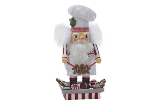 Have The Complete Christmas Experience With Your Very Own Nutcracker! This Is Our 12″ Gingerbread Chef Nutcracker! This Would Be A Great Gift For Anyone Who Loves A Dessert Themed Nutcracker. It Is Adorned With Red, And White Glittering Accents While Our Chef Holds A Sting Of Gingerbread Men With A Tray Of Gingerbread Men And Other Candies Sit At His Feet! He Is Seen Wearing The Traditional Chefs Hat And Coat Complete With Candy Canes In His Pocket! This Nutcracker Is Also Holding A Staff Topped With A Ice Cream Cone! The Delectable Dessert Nutcracker, Will Melt Any Nutcracker Lovers Heart.