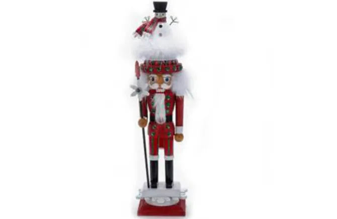Have The Complete Christmas Experience With Your Very Own Nutcracker! This Is Our 18″ Snowman Head Nutcracker! This Would Be A Great Gift For Anyone Who Loves Snowmen! It Is Adorned With Classic Nutcracker Qualities In A Glittery Red Outfit With Green Rhinestone Accent, Topped With A Whimsical Snowman Hat. This Red And Green Glittering Nutcracker Will Melt Any Nutcracker Lovers Heart.