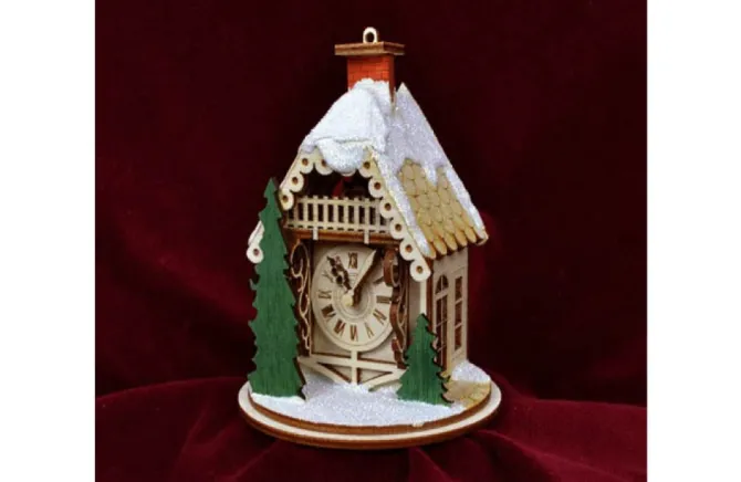 This Is Our Alpine Clock Shop Ginger Cottage! Each Cottage Has A Small Hole On The Underside Designed To Fit A Standard Christmas Tree Light, Once The Ginger Cottage Is Lit Up You Will See That Each Ginger Cottage Holds Delicate Details And Hidden Surprises! The First Surprise Upon Lighting Is The Delicate Scene Inside The 3D Figure.