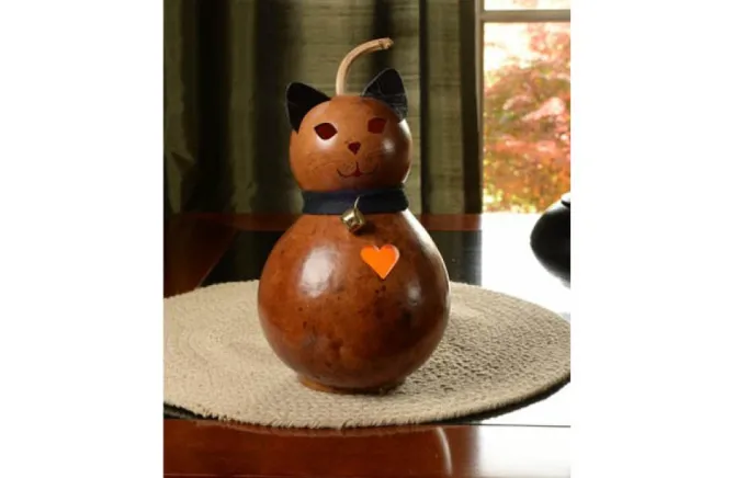Bella Is Our Adorable Cat. She Is Caramel In Color And She Is Approximately 5″ In Diameter And Comes With An Electric Light. Warning: Gourds Are Flammable. Do Not Use Candles In Them Or Place Near Open Flames.