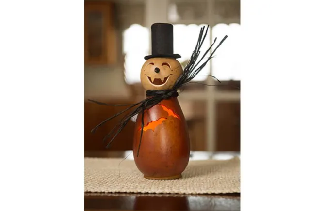 Ethan Is Burnt Orange In Color With A Natural Colored Head. He Is Approximately 10″ Tall And Comes With An Electric Light. Warning: Gourds Are Flammable. Do Not Use Candles In Them Or Place Near Open Flames.
