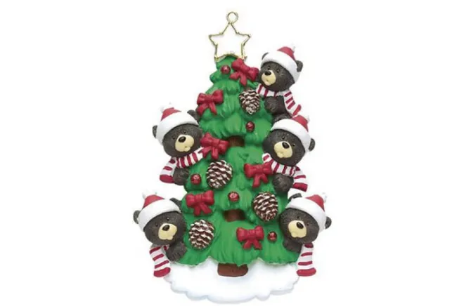 The Bear In Tree Family Can Be Personalized Free Of Charge By Simply Christmas Staff! There Is Space For Each Family Members Name, And On The Base Of The Ornament Your Last Name And/Or The Date Can Be Displayed! The Names Will Be Put On The Brim Of The Hats Of The Bears While The Last Name And/Or Date Will Be Placed On The White Base Of The Tree. The Lettering For This Ornament Is Done In Black.