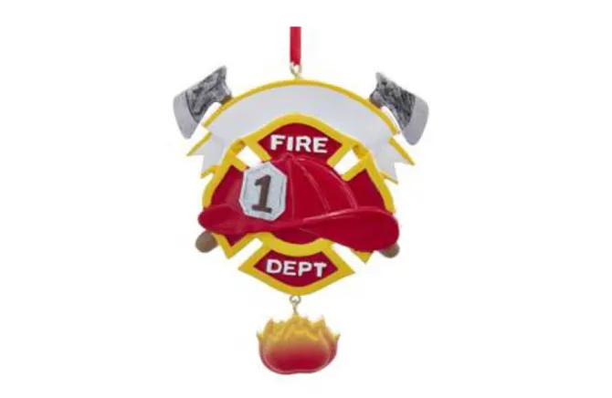 Here Is A Great Way To Celebrate The People You Love And What They Love To Do! This Is Our Fire Department With Flame Ornament, Perfect For The Fireman In Your Life! It Features A Large Red Fireman’S Hat, Two Crossed Axes On Either Side Of A White Banner, This Ornament Also Features A Dangle Of Flames. The Words Fire Dept. Are Featured Behind The Hat As Well!