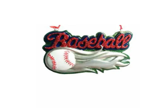 Here Is A Great Way To Celebrate The People You Love And What They Love To Do! This Is Our Flaming Baseball Ornament! It Features A Traditional Baseball Flying Through The Air With Silver Flames Trailing Behind It As The Word Baseball Shines Above The Ball In Glittering Red Letters!