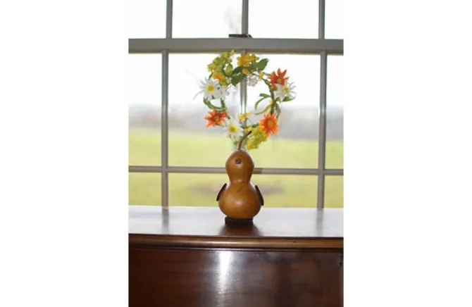Our Lucky Duck Is Yellow And Walnut In Color. Approximately 3.5 Inches In Diameter And 5.5 Inches Tall. Warning: Gourds Are Flammable. Do Not Use Candles In Them Or Place Near Open Flames.