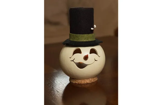 This Little Meadowbrooke Is Sure To Put A Smile On Your Face And He Is Full Of Holiday Cheer! He Is Approximately 3″ In Diameter And White In Color. This Gourd Also Has A Battery Operated Tea Light Option.