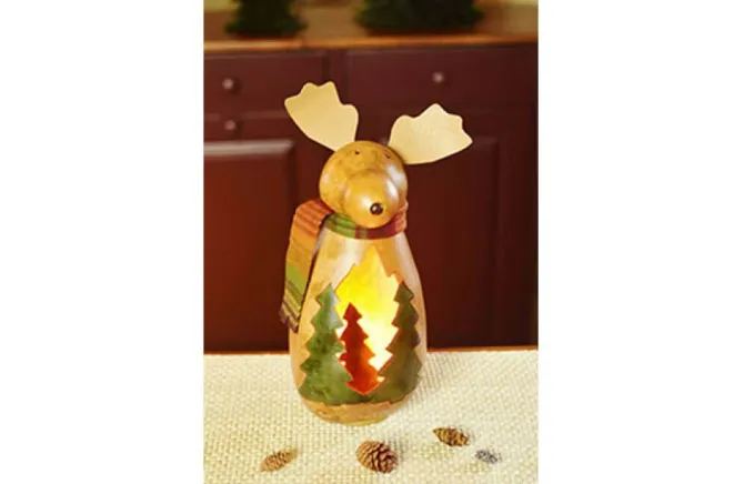Meet Our New Moose, Montana. Montana Has A Beautiful Tree Scene Cut Out And A Warm Scarf. Approximately 14″ Tall And Comes With An Electric Light.