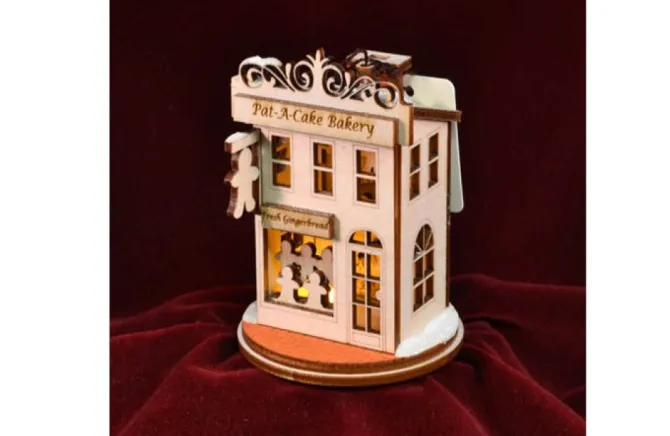 This Is Our Pat-A-Cake Bakery Ginger Cottage! Each Cottage Has A Small Hole On The Underside Designed To Fit A Standard Christmas Tree Light, Once The Ginger Cottage Is Lit Up You Will See That Each Ginger Cottage Holds Delicate Details And Hidden Surprises! The First Surprise Upon Lighting Is The Delicate Scene Inside The 3D Figure.