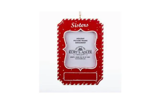 This Is A Great Way To Display The Members Of Your Family On Your Christmas Tree This Year! Our Sisters Frame Is Bright Red And Has The Word Sisters Already Printed On The Top. There Is Room For One Small Picture To Be Placed Inside The Ornament! The Edges Of The Ornament Are Candy Caned In Red And White, And The Opening To View The Picture Is Decorative In Curves And Edges Instead Of The Common Square.