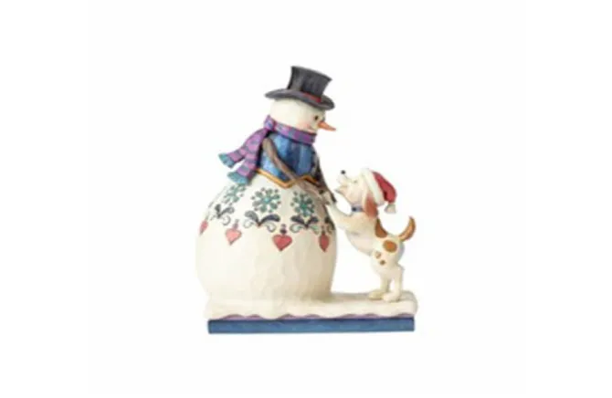 This Charming Snowman With Puppy Is A Delightful Meeting Of Wintry Friends. Colorfully Decorated In Handcrafted Detail, This Whimsical Features Jim Shore’S Unique Combination Of Quilt Patterns And Rosemaling Design.