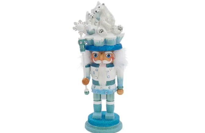 Have The Complete Christmas Experience With Your Very Own Nutcracker! This Is Our 15″ Polar Bear Hat Nutcracker! This Would Be A Great Gift For Anyone Who Loves Wildlife! It Is Adorned With A Beautiful Polar Bear Family Sitting Atop The Glittering Snow And Act As The Hat For This Nutcracker! He Stands With A Snow Staff Also In Hand Complete With Snowflake Top And Blue Sequins! The Pastel Colors In Shades Of Blue Will Melt Any Nutcracker Lovers Heart.