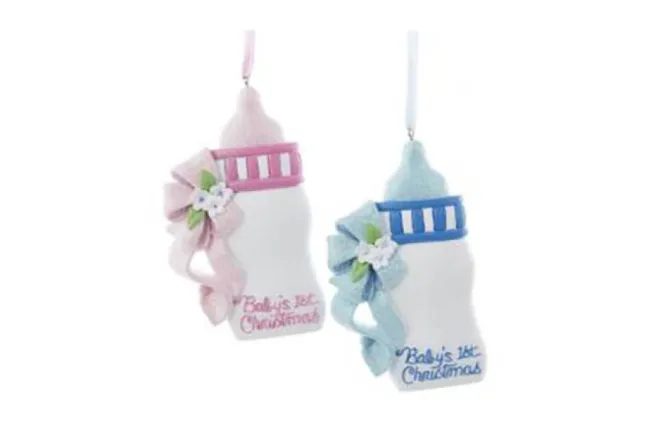The Baby Bottle Can Be Personalized Free Of Charge By Simply Christmas Staff! This Ornament Has Space For A Name, Date As Well As Room For More Personal Baby Information! The Lettering For Personalization Will Be In Black.