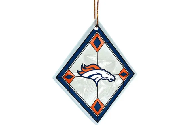 This Is Our Denver Broncos Glass Diamond! Featured Is The Team Logo In The Center Of A Etched Glass Diamond, With A Team Color Bordering The Sides.