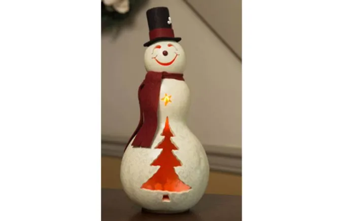 Our White Snowman, Easton, Is A Cheerful Addition To Our Winter Designs. He Has A Top Hat And A Red Scarf. He Is Approximately 5 1/2″ In Diameter And 11″ Tall And Comes With An Electric Light