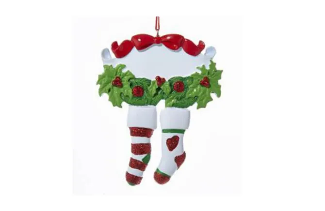 The Stocking Family Can Be Personalized Free Of Charge By Simply Christmas Staff! There Is Space For Each Family Members Name On The Top Of The Stockings. There Can Also Be On The Top Of The Ornament Your Last Name And The Date, These Will Be Displayed In The White Space Under The Big Red Bow!