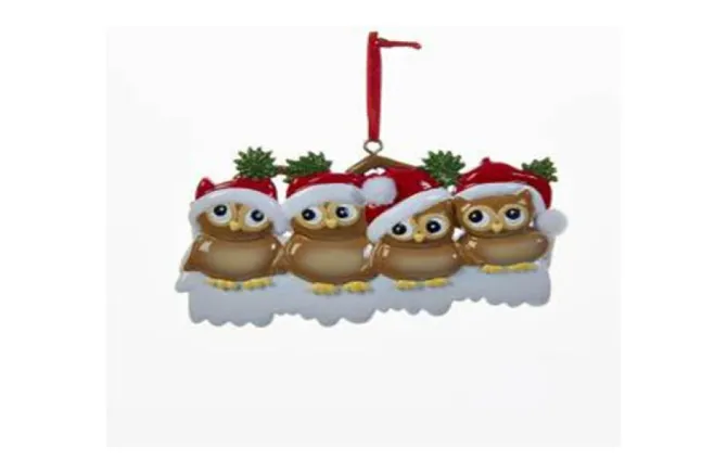 The Owl Family Can Be Personalized Free Of Charge By Simply Christmas Staff! There Is Space For Each Family Members Name, And On The Base Of The Ornament Your Last Name And/Or The Date Can Be Displayed! The Names Will Be Put On The Bellies Of The Owls While The Last Name And/Or Date Will Be Placed On The Snow Covered Branch Just Below The Owls. The Lettering For This Ornament Is Done In Black.