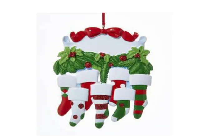 The Stocking Family Can Be Personalized Free Of Charge By Simply Christmas Staff! There Is Space For Each Family Members Name On The Top Of The Stockings. There Can Also Be On The Top Of The Ornament Your Last Name And The Date, These Will Be Displayed In The White Space Under The Big Red Bow!