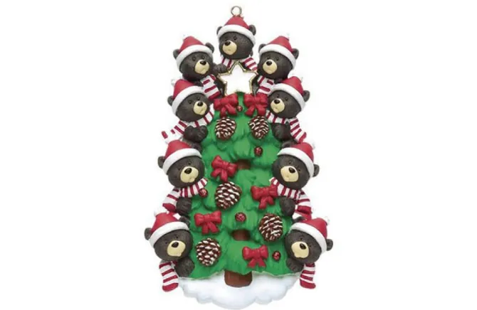 The Bear In Tree Family Can Be Personalized Free Of Charge By Simply Christmas Staff! There Is Space For Each Family Members Name, And On The Base Of The Ornament Your Last Name And/Or The Date Can Be Displayed! The Names Will Be Put On The Brim Of The Hats Of The Bears While The Last Name And/Or Date Will Be Placed On The White Base Of The Tree. The Lettering For This Ornament Is Done In Black.