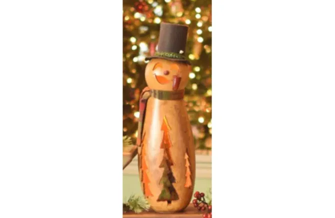 Flurry Is Our Caramel Colored Snowman That Has A Red Noes And A Red Pipe. On The Inside You Will Find A Beautiful Green Tree. He Is Approximately 19″ Tall And Comes With An Electric Light.