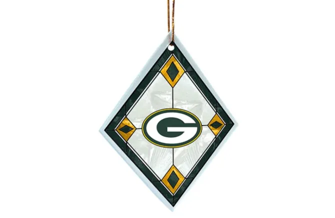 This Is Our Green Bay Packers Glass Diamond! Featured Is The Team Logo In The Center Of A Etched Glass Diamond, With A Team Color Bordering The Sides.