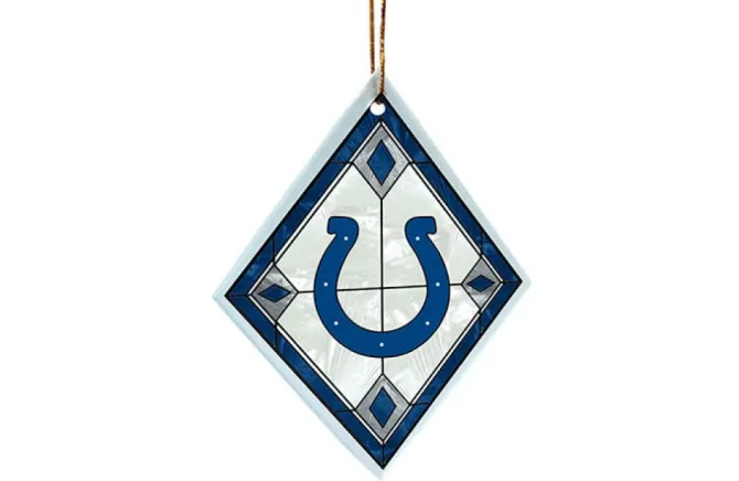 This Is Our Indianapolis Colts Glass Diamond! Featured Is The Team Logo In The Center Of A Etched Glass Diamond, With A Team Color Bordering The Sides.