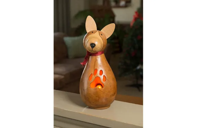 Max Is Our Adorable Dog! He Comes With An Electric Light And Is Approximately 10″ Tall. Warning: Gourds Are Flammable. Do Not Use Candles In Them Or Place Near Open Flames